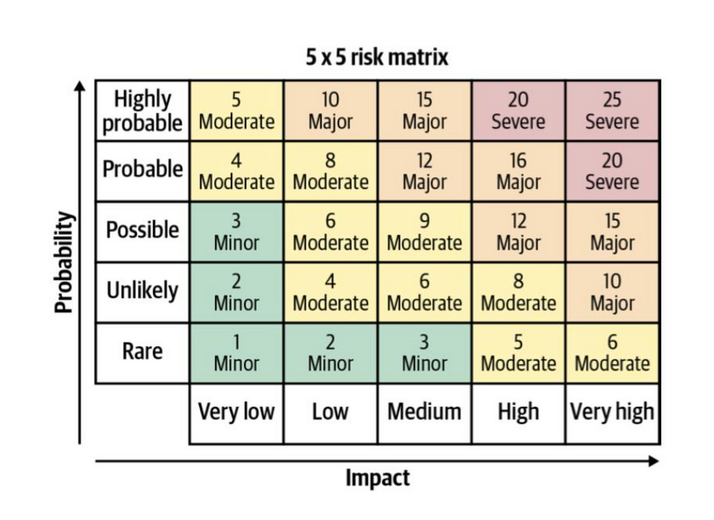 Machine learning risk assessment can be done using a 5x5 risk matrix with impact on one side and the likelihood of risk event on the other. There are two types of risk events: the model is unavailable, or the model is returning bad predictions.