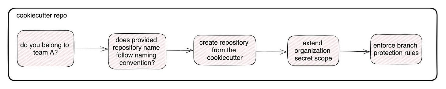 We recommend creating a dedicated GitHub team for each of the data science teams, and a separate cookie-cutter repository from which members of certain GitHub teams can trigger a workflow to create repositories.