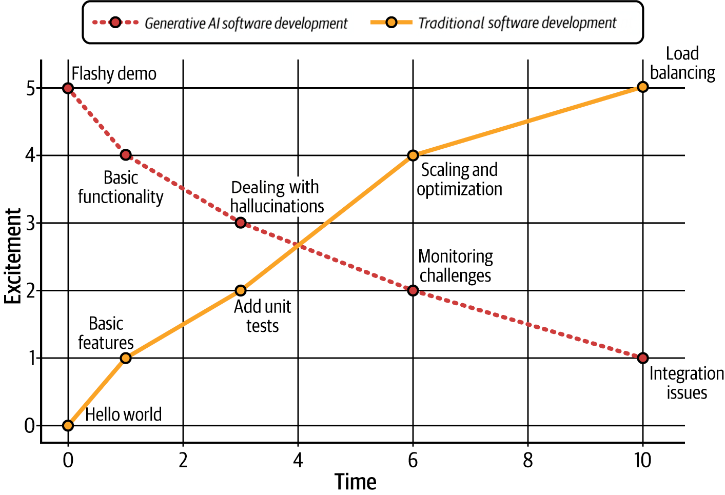 The proof-of-concept purgatory problem. Using frameworks prematurely will get you in POC purgatory. They’re great for demos: with a framework, you can build a RAG system demo in five lines of code. But it’s exactly this abstraction that traps teams: you can’t see what prompt was sent to the LLM, you can’t inspect the retrieval results, you can’t iterate on the pieces that matter. A question from Hugo: “How can we even think about iterating quickly on this MVP when we have no access to all the inner workings?”